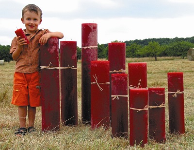 Raureif-Stumpen 3 Docht D: 150mm H: 600mm orange